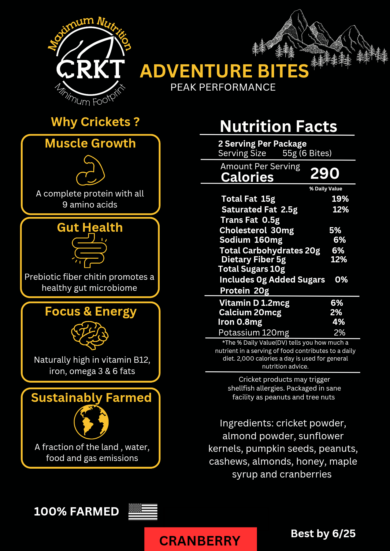 All natural ingredients, cricket protein based bites. To fuel your body for any adventure.